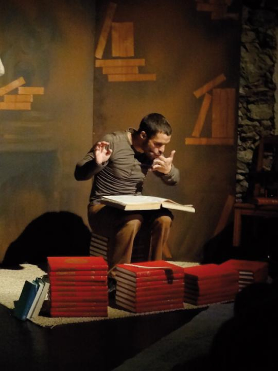 En séances scolaires exclusivement Il était une fois un ogre qui préférait dévorer les livres plutôt que les enfants… Un roi, voulant se faire aimer du peuple, lui propose de redevenir l’ogre cruel d’antan.