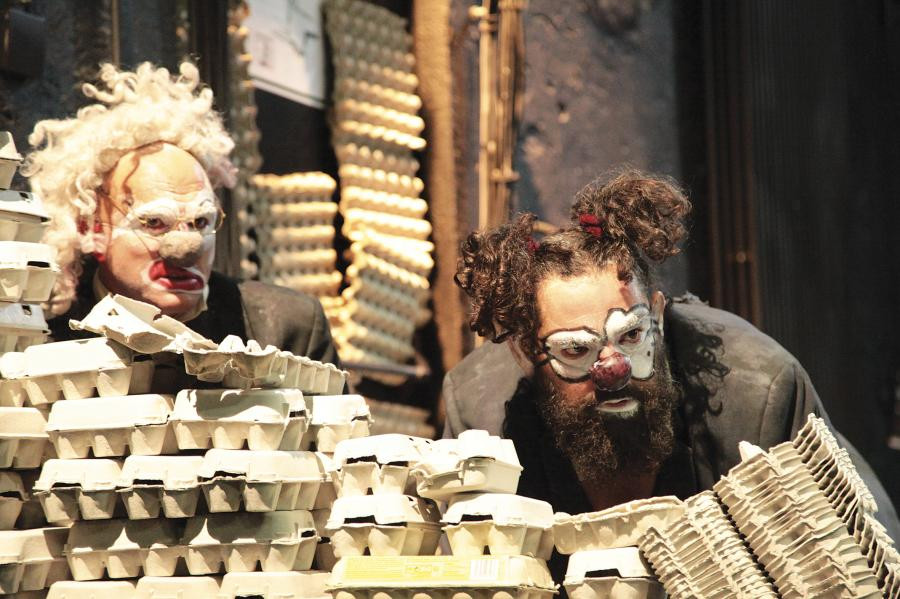 Deux figures clownesques, adeptes du burlesque acide, tentent de mettre un doigt sur la bouche du monde.