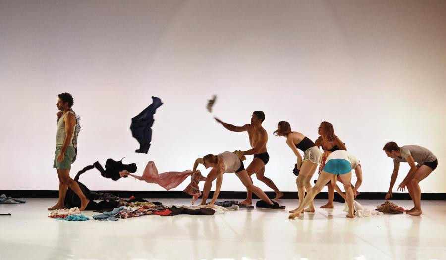 Ils sont sept sur le plateau lorsque le public entre dans la salle. Ils sont sept et vont transpirer, répéter les gestes, improviser, danser, tantôt dans une énergie folle, tantôt dans une lenteur presque irréelle.
